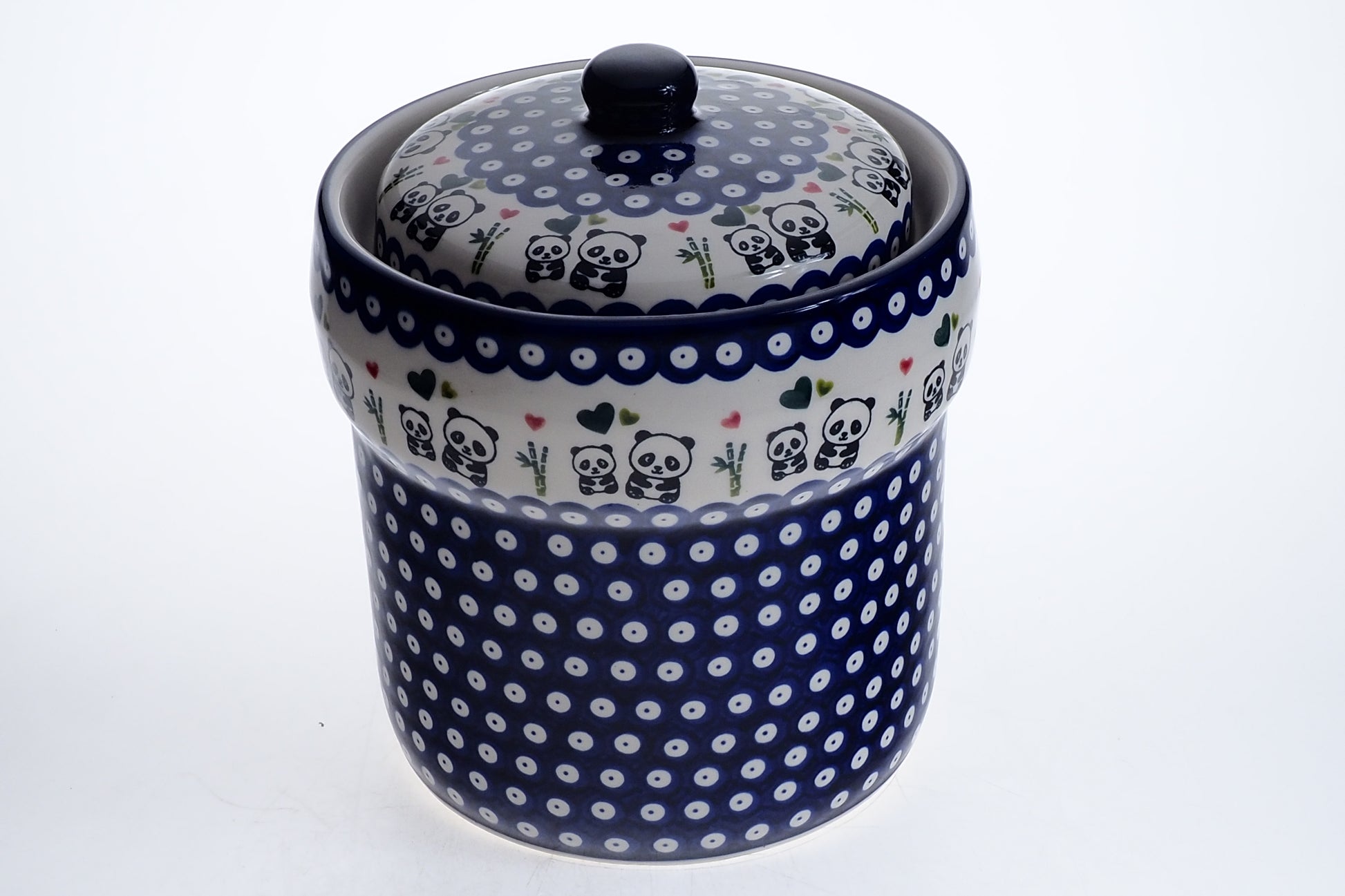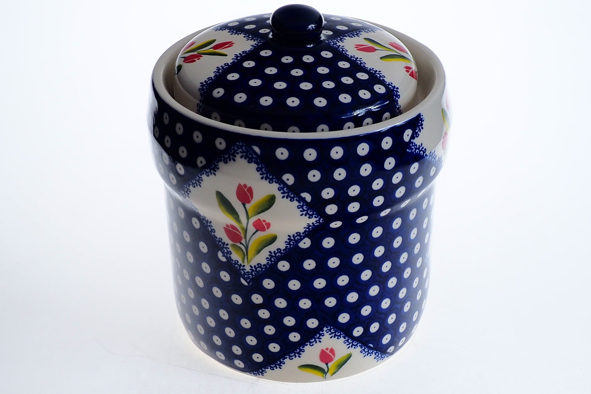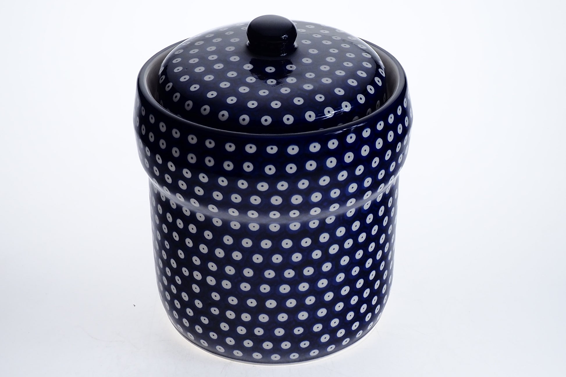 Pojemnik wykonany jest z ceramiki i zdobiony ręcznie przy udziale ludzkich rąk. Naczynie jest wykonywane ręcznie z największą precyzją i jakością. Każdy egzemplarz powstaje indywidualnie, dlatego mogą występować drobne różnice w kolorystyce lub rozmieszczeniu wzoru, co czyni Twoje naczynie do kiszenia unikatowym rękodziełem.