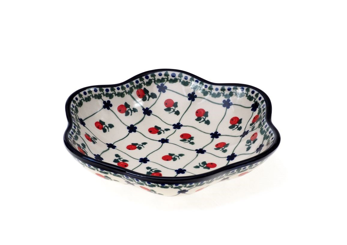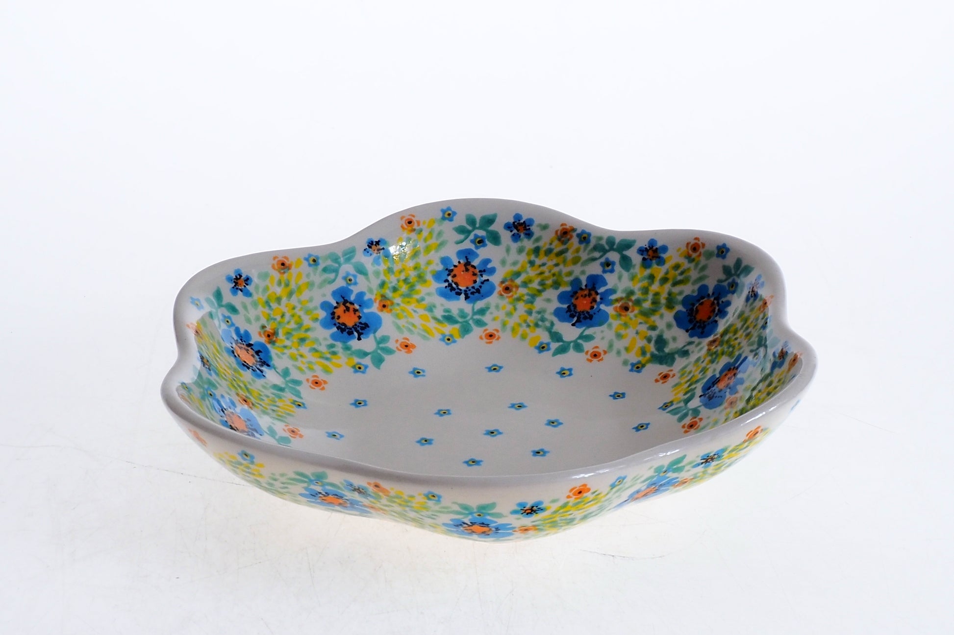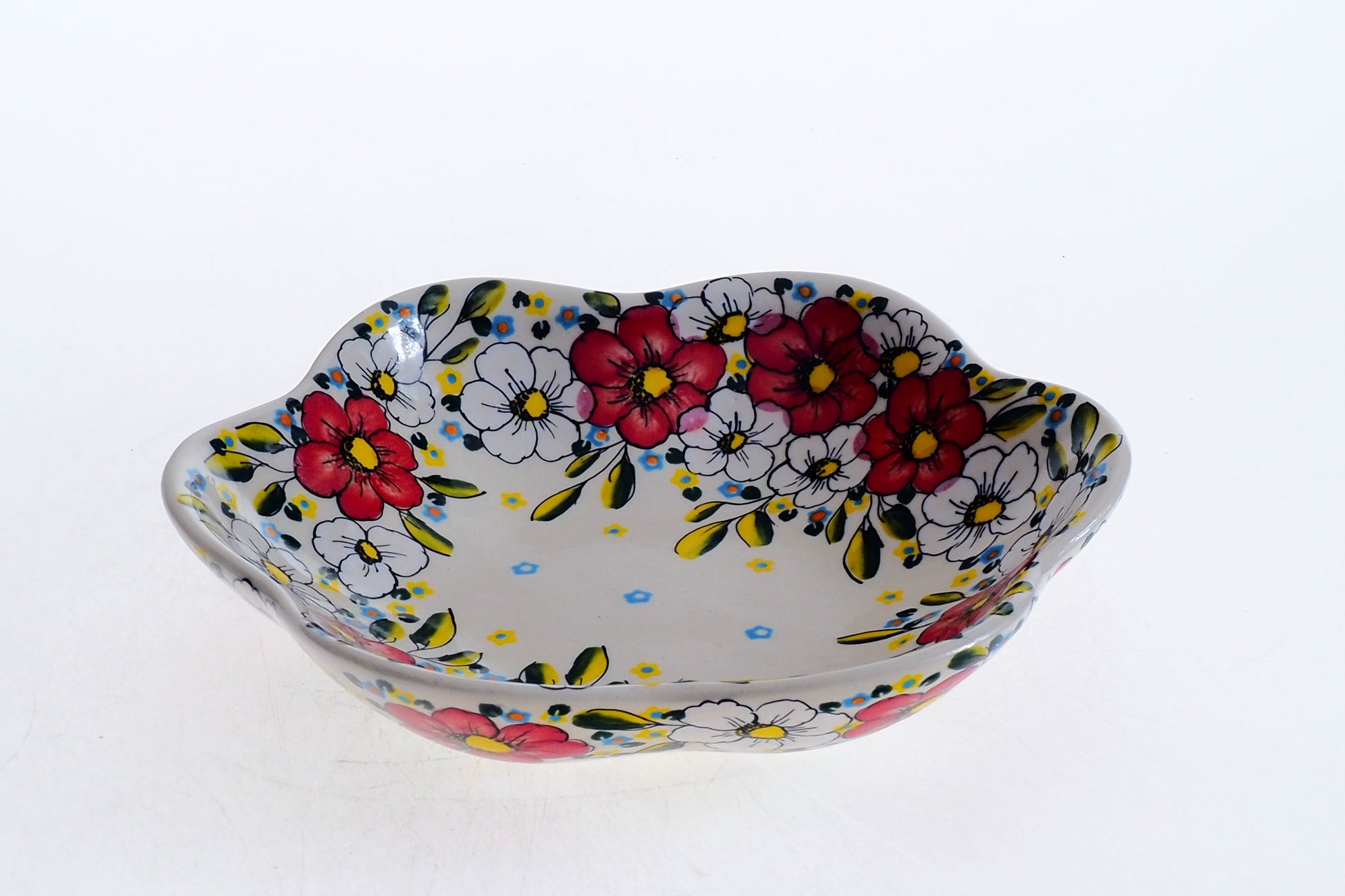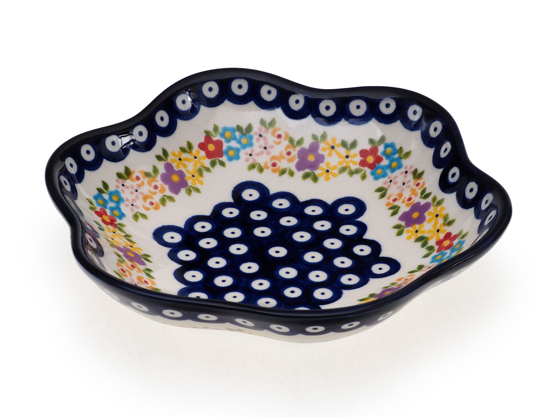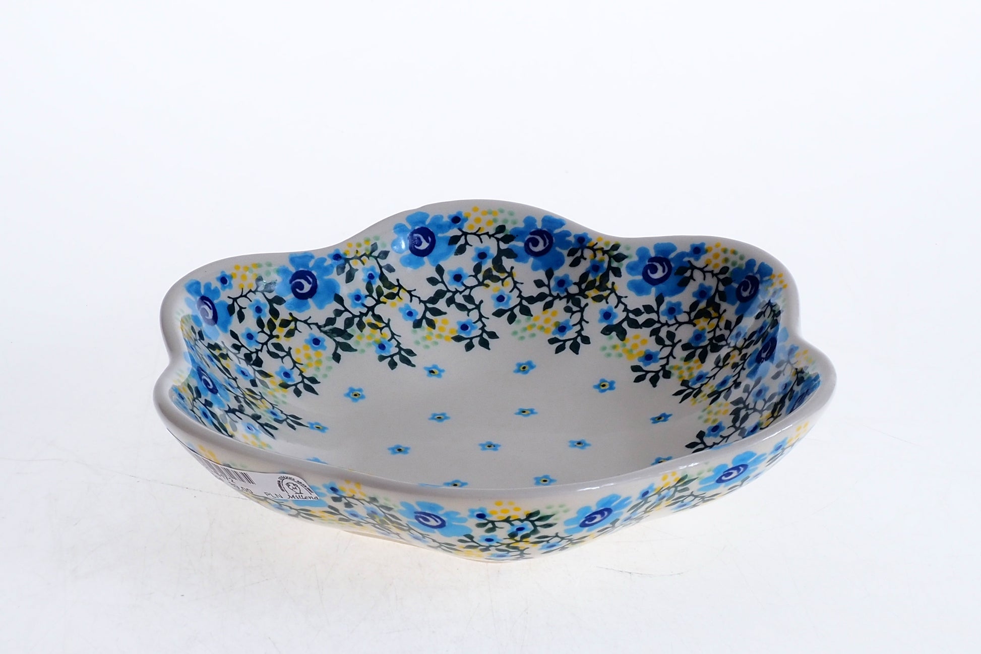 Miska wykonana jest z ceramiki i zdobiona ręcznie przy udziale ludzkich rąk. Naczynie jest wykonywane ręcznie z największą precyzją i jakością. Każdy egzemplarz powstaje indywidualnie, dlatego mogą występować drobne różnice w kolorystyce, wykończeniu lub rozmieszczeniu motywów dekoracyjnych. Są to naturalne cechy ceramiki bolesławieckiej, które świadczą o jej autentyczności i niepowtarzalnym charakterze.
