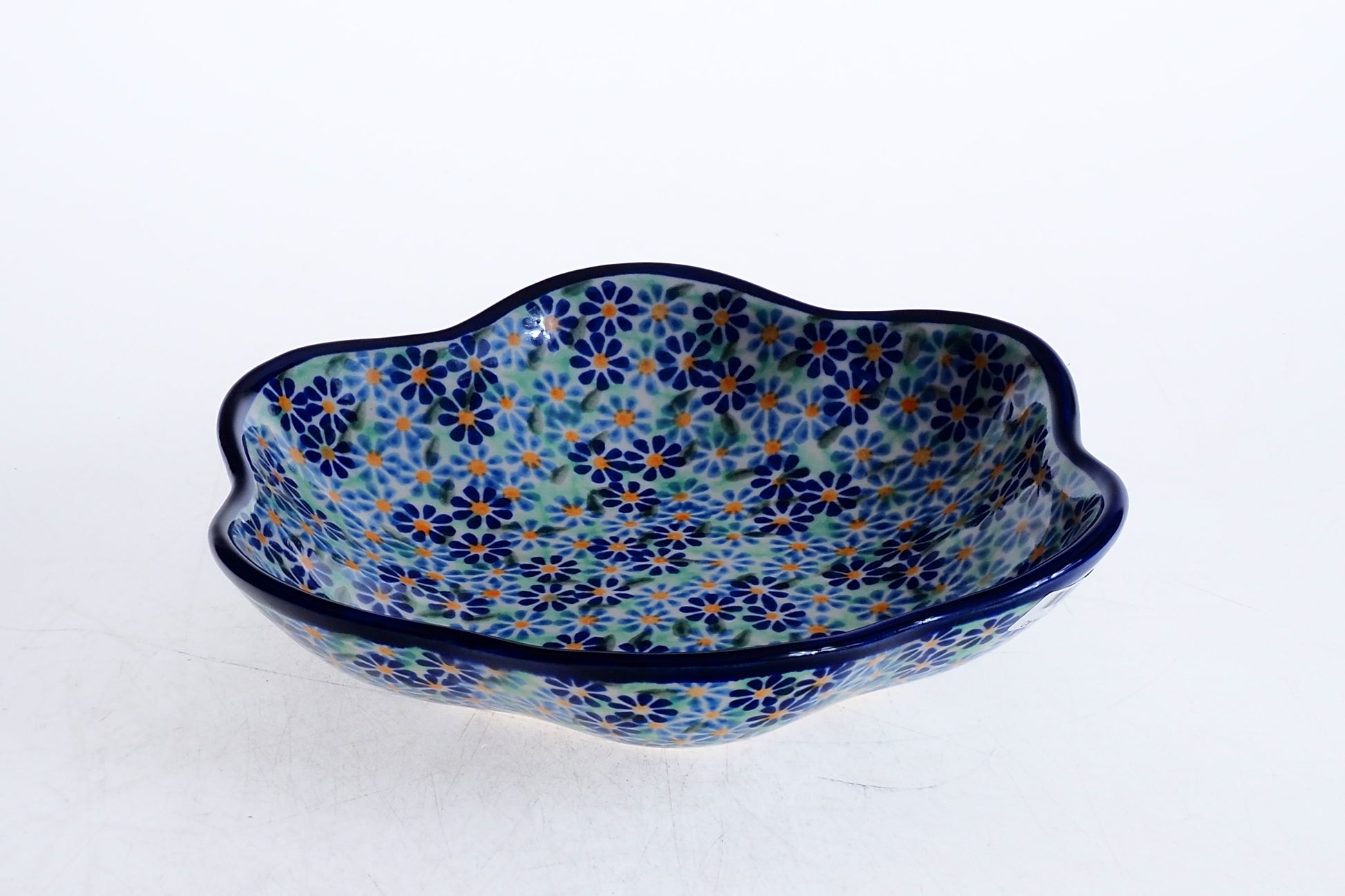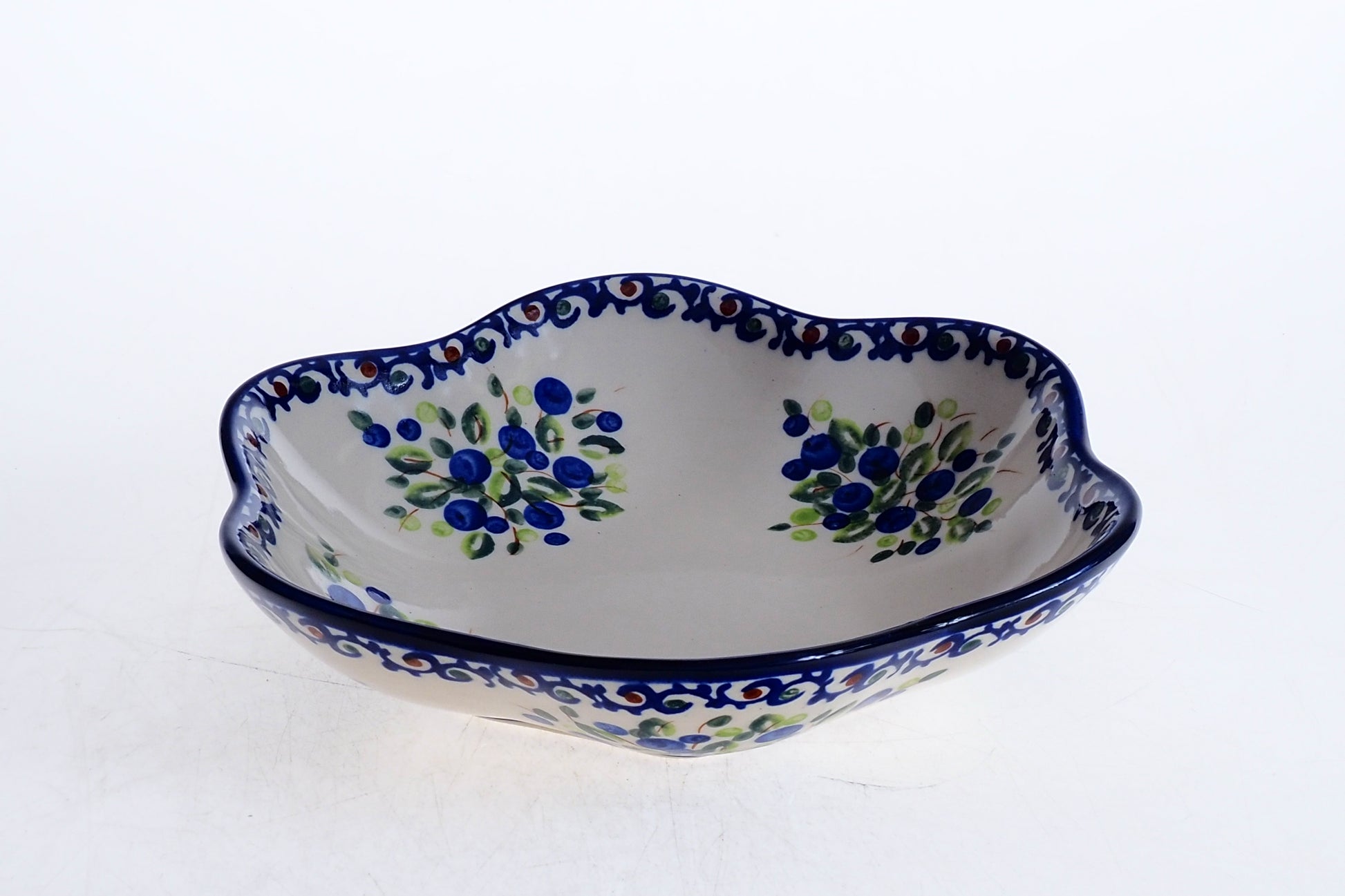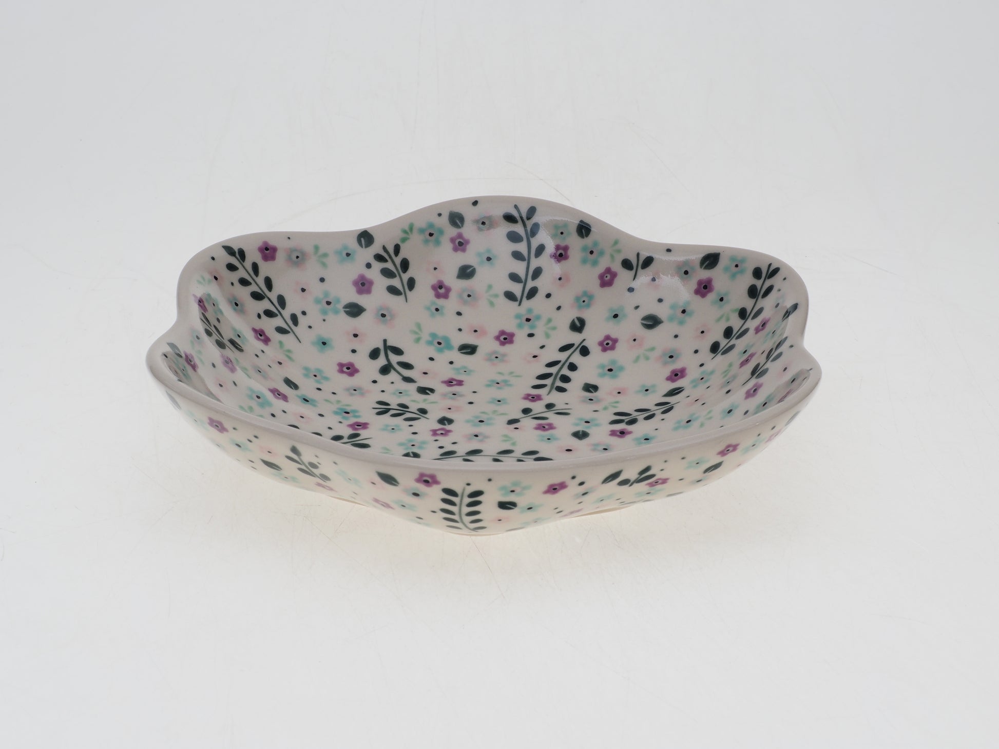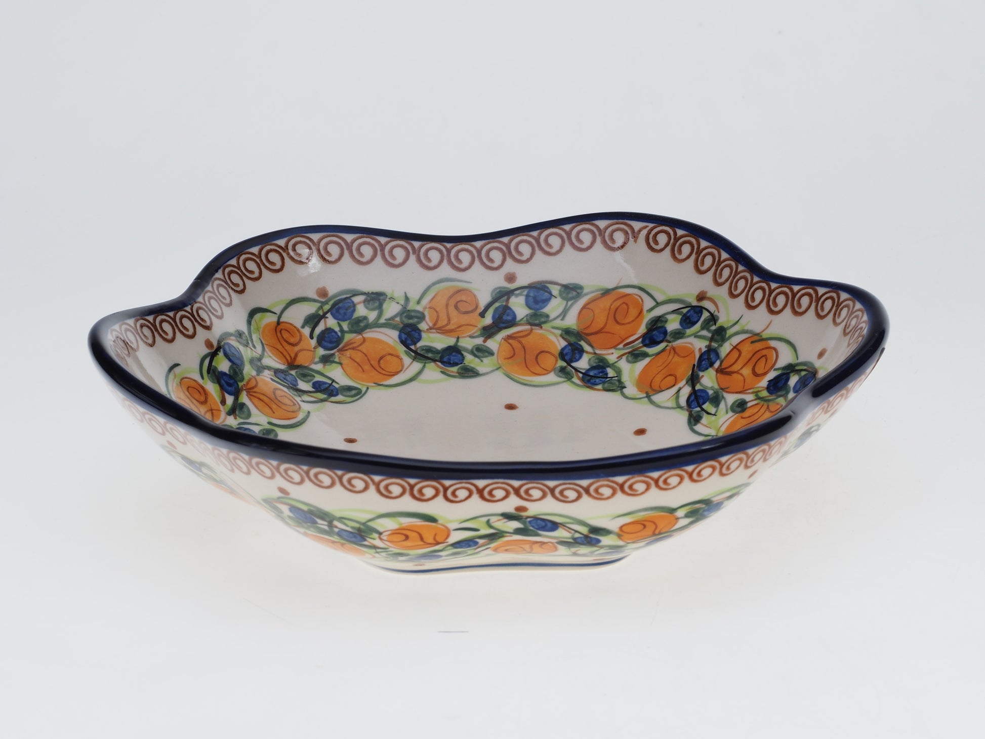Miska wykonana jest z ceramiki i zdobiona ręcznie przy udziale ludzkich rąk. Naczynie jest wykonywane ręcznie z największą precyzją i jakością. Każdy egzemplarz powstaje indywidualnie, dlatego mogą występować drobne różnice w kolorystyce, wykończeniu lub rozmieszczeniu motywów dekoracyjnych. Są to naturalne cechy ceramiki bolesławieckiej, które świadczą o jej autentyczności i niepowtarzalnym charakterze.