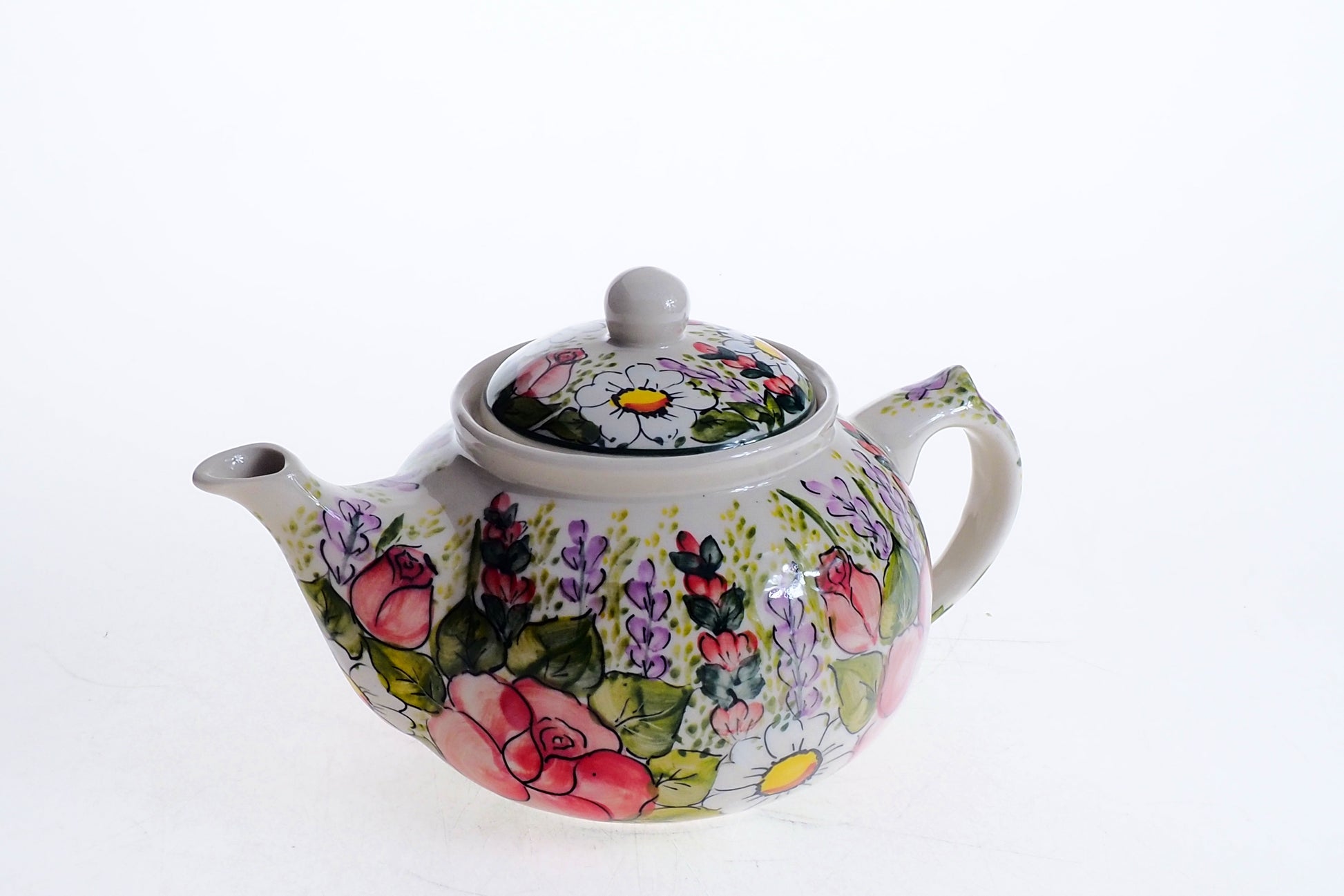 Czajnik wykonany jest z ceramiki i zdobiony ręcznie przy udziale ludzkich rąk. Naczynie jest wykonywane ręcznie z największą precyzją i jakością. Każdy egzemplarz powstaje indywidualnie, dlatego mogą występować drobne różnice w nasyceniu barw lub rozmieszczeniu motywów zdobniczych. Są to naturalne cechy rękodzieła, które sprawiają, że czajnik staje się unikatową, artystyczną ozdobą Twojego stołu.