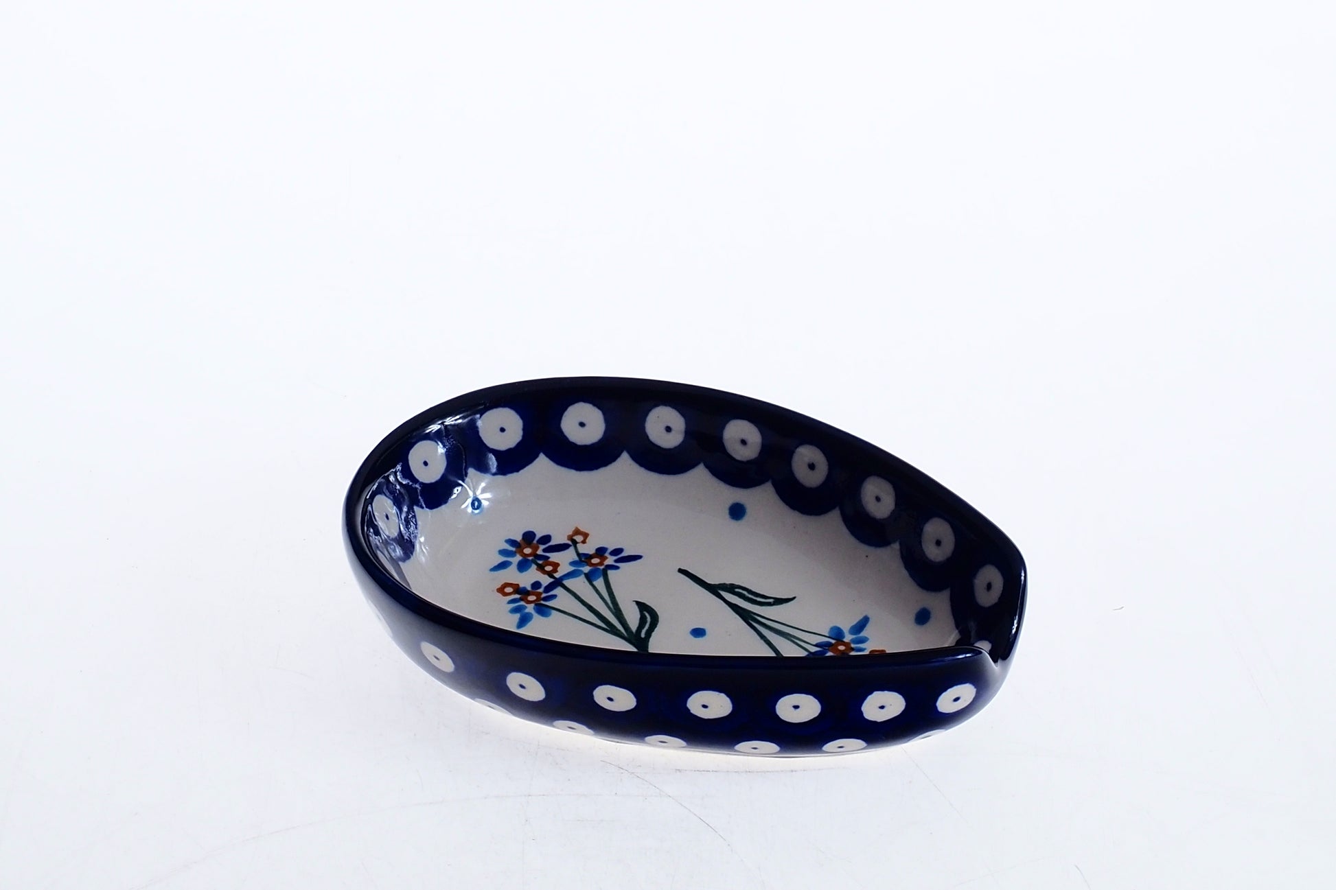 Ten uroczy element bolesławieckiej ceramiki to dowód na to, że funkcjonalność może iść w parze z wyjątkowym designem. Choć tradycyjnie nazywana podstawką pod łyżkę, jej profilowany kształt i gładka, szkliwiona powierzchnia czynią ją jednym z najbardziej uniwersalnych dodatków w domu. Wykonana z trwałej kamionki, jest odporna na wysokie temperatury i zabrudzenia, dzięki czemu chroni Twoje blaty, jednocześnie ciesząc oko rzemieślniczym zdobieniem.