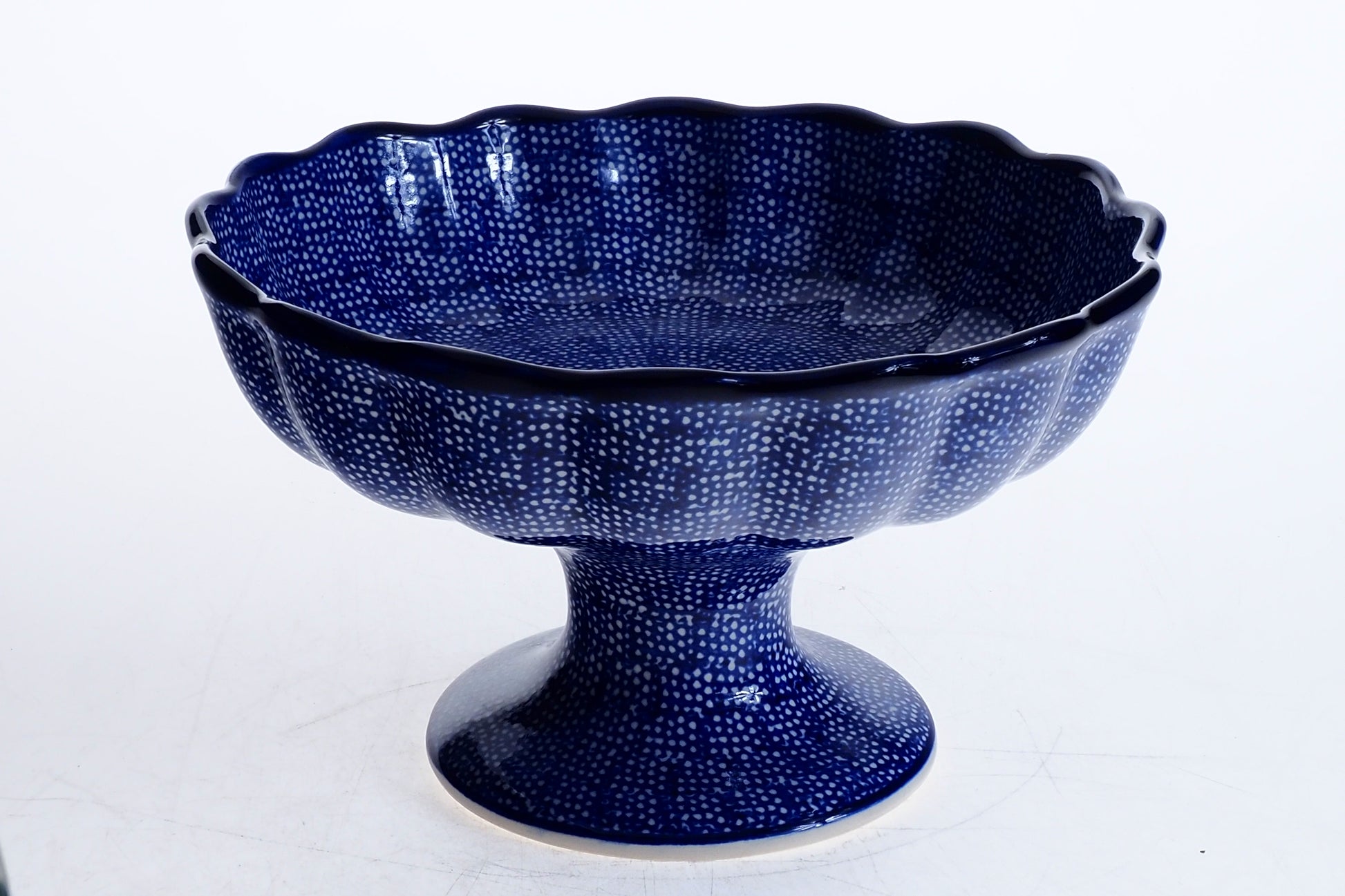 Ta wyjątkowa patera o średnicy 21 cm to naczynie, które nadaje oprawie stołu luksusowego, a zarazem przytulnego charakteru. Dzięki wyniesieniu na stabilnej nodze, patera doskonale eksponuje serwowane na niej specjały – od domowych wypieków i owoców, po wykwintne przystawki czy sery. Jej charakterystyczny, falowany brzeg dodaje całości lekkości i finezji, sprawiając, że patera staje się centralnym punktem dekoracyjnym w jadalni lub salonie.
