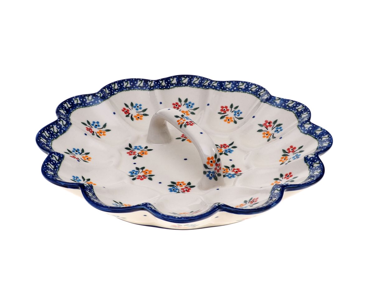 Talerz na 12 jaj z uchwytem 8-28 to dowód na to, że bolesławiecka ceramika potrafi być jednocześnie piękna, trwała i niezwykle sprytna w codziennym użytkowaniu.