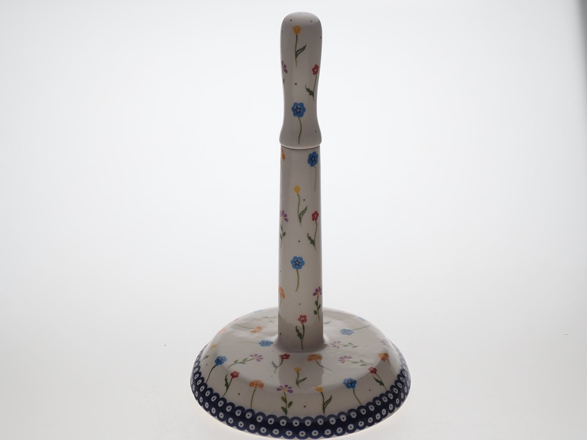 This versatile ceramic rack is designed for stable and aesthetic storage of kitchen paper towels or spare toilet rolls. Its tall column and wide, sturdy base ensure ease of use, preventing the rack from sliding when tearing off the paper.