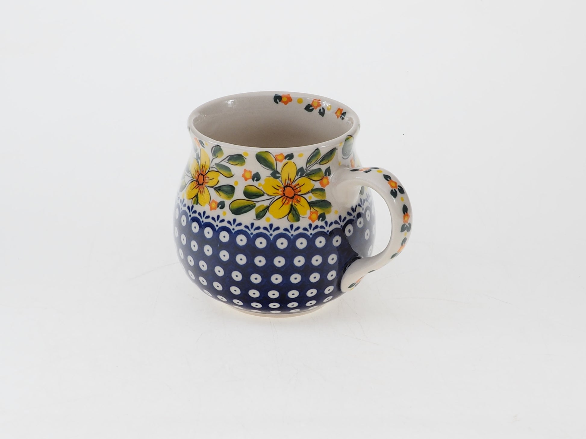 Kubek łączy funkcjonalność z tradycyjnym rzemiosłem i będzie praktycznym elementem codziennej zastawy, a także ciekawym uzupełnieniem ceramicznej kolekcji.