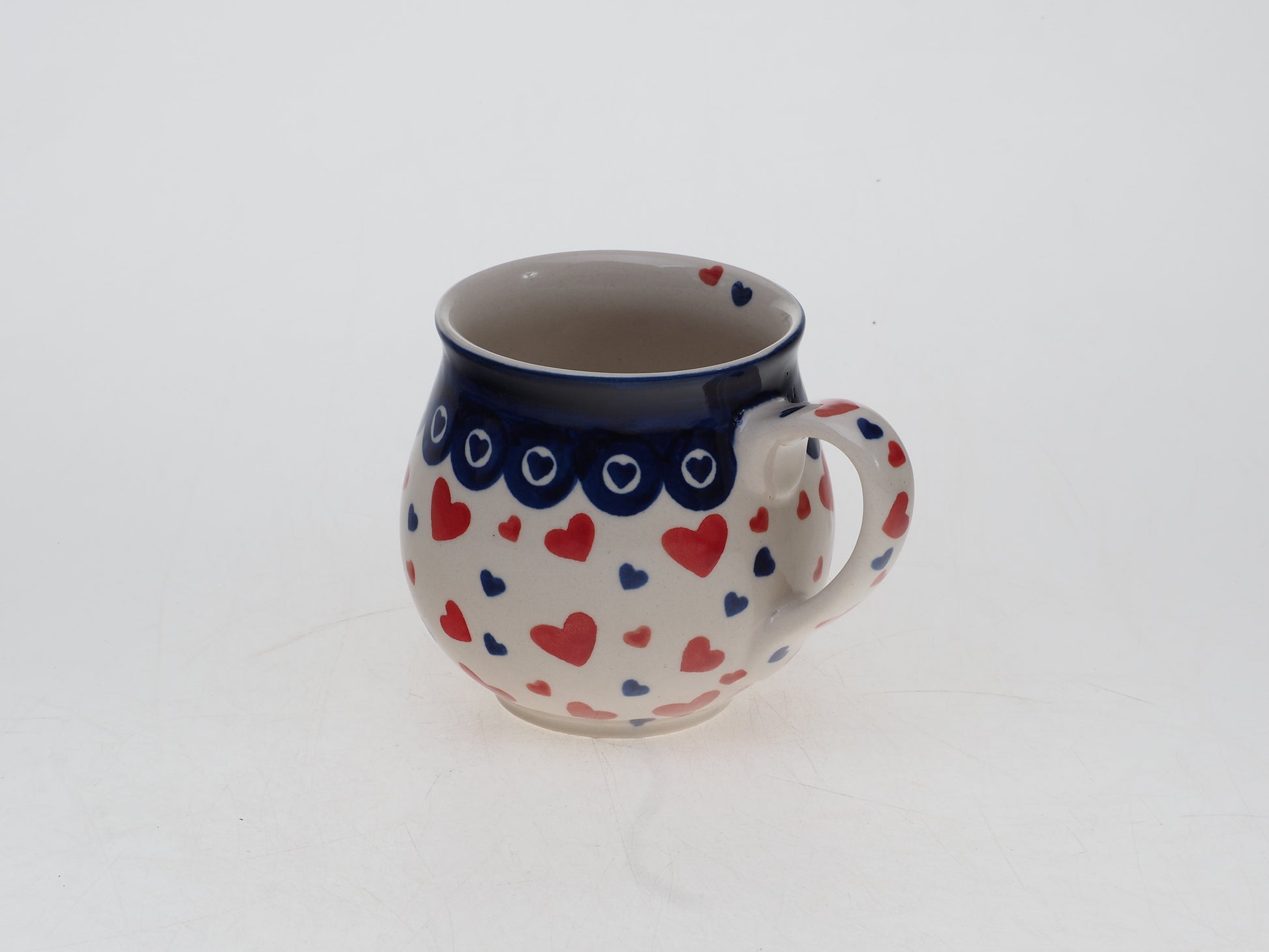 Kubek łączy funkcjonalność z tradycyjnym rzemiosłem i będzie praktycznym elementem codziennej zastawy, a także ciekawym uzupełnieniem ceramicznej kolekcji.