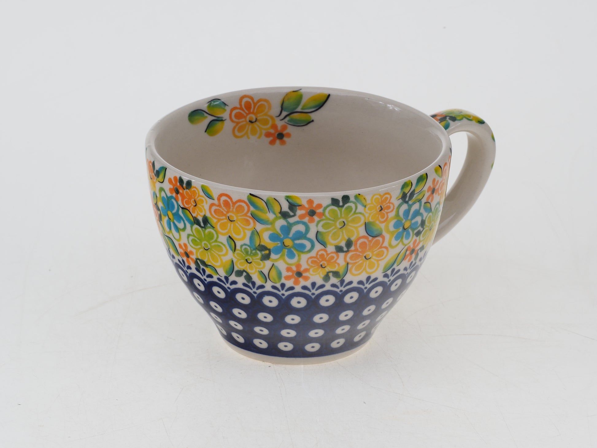 Filiżanka łączy funkcjonalność z tradycyjnym rzemiosłem i będzie praktycznym elementem codziennej zastawy oraz efektownym uzupełnieniem ceramicznej kolekcji.
