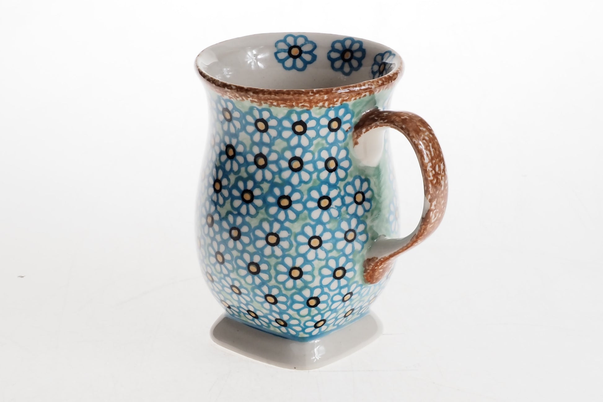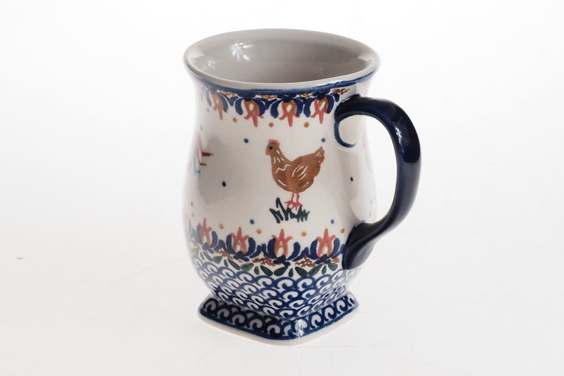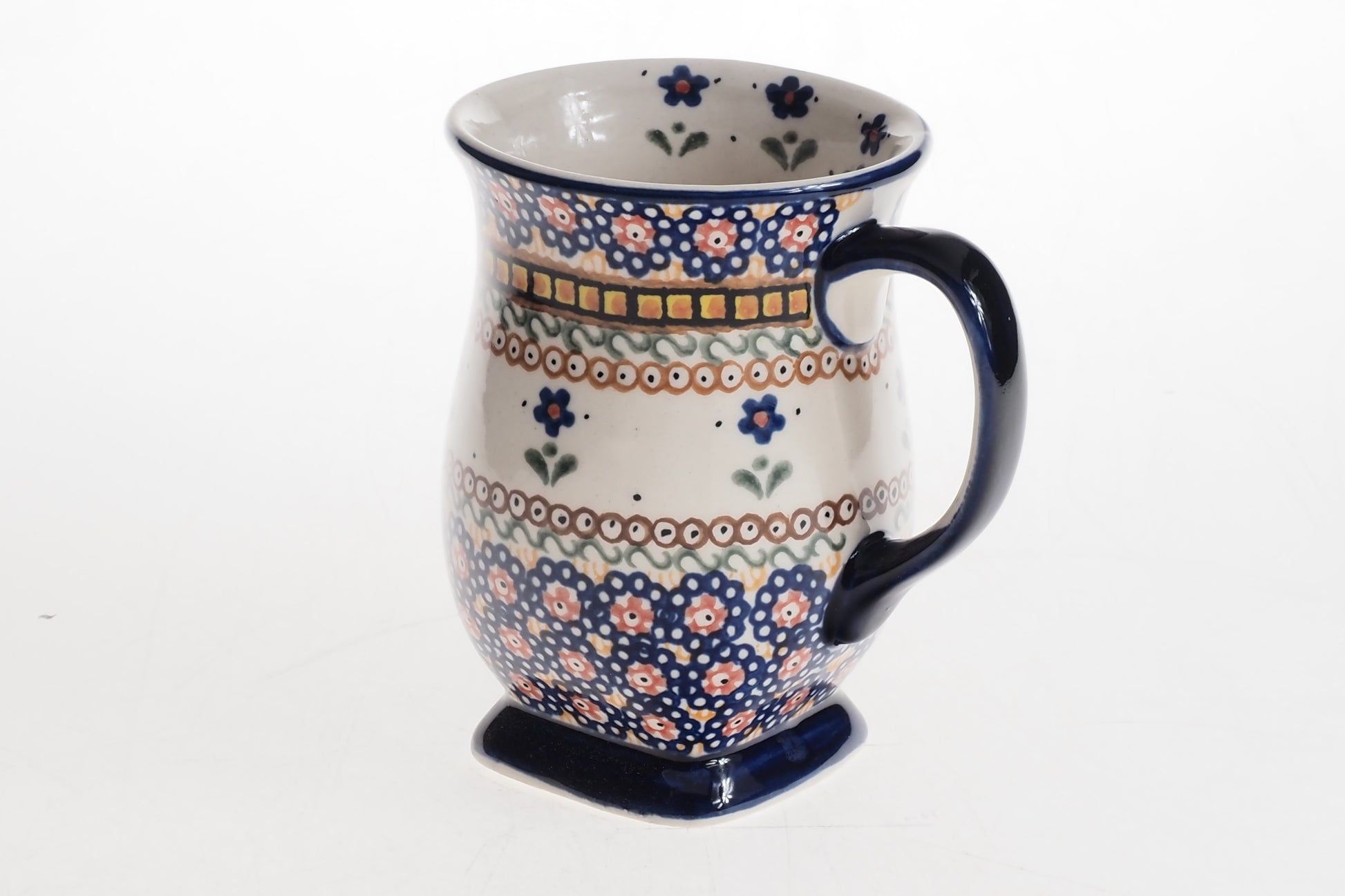 Kubek łączy funkcjonalność z tradycyjnym rzemiosłem i będzie praktycznym elementem codziennej zastawy oraz efektownym uzupełnieniem ceramicznej kolekcji.