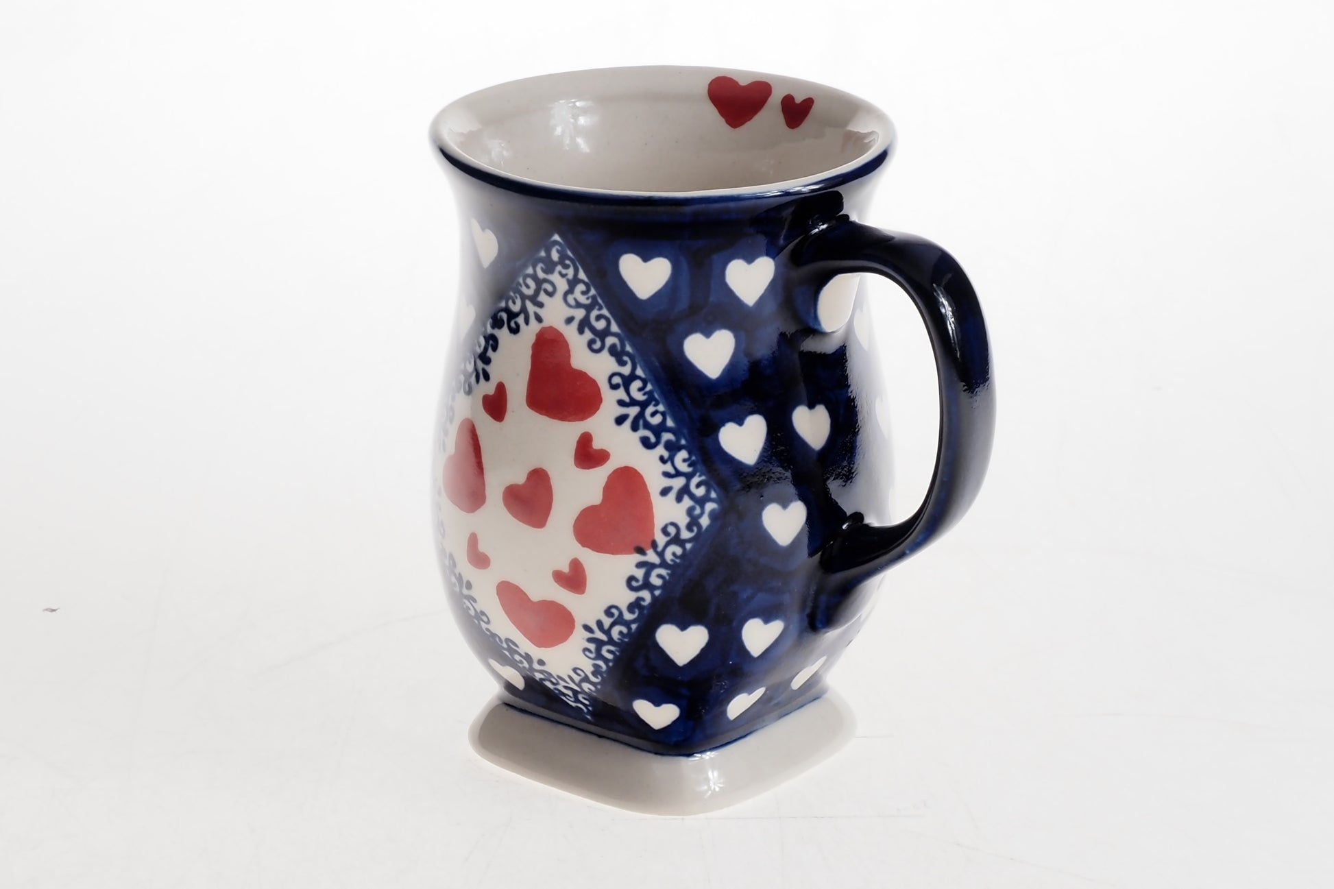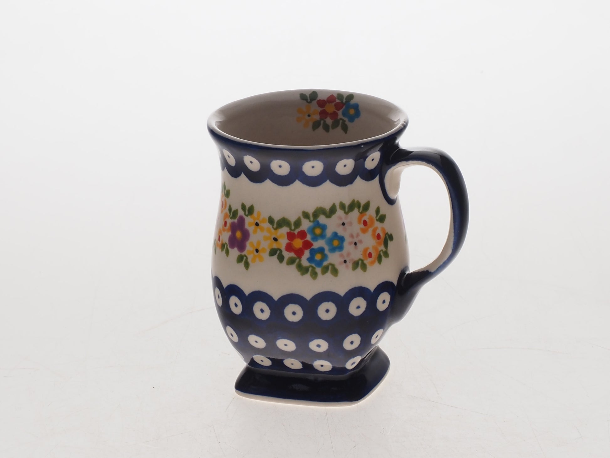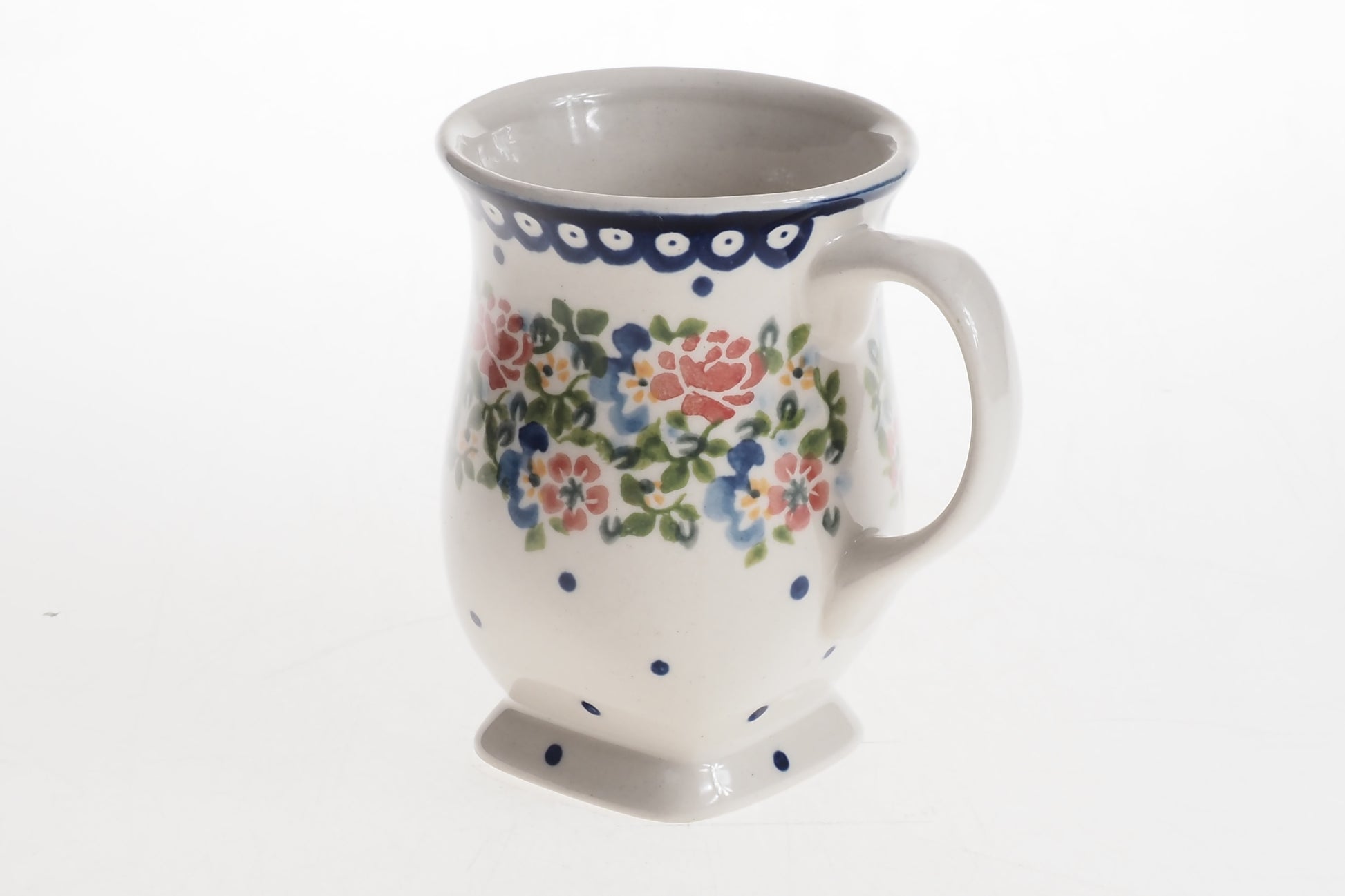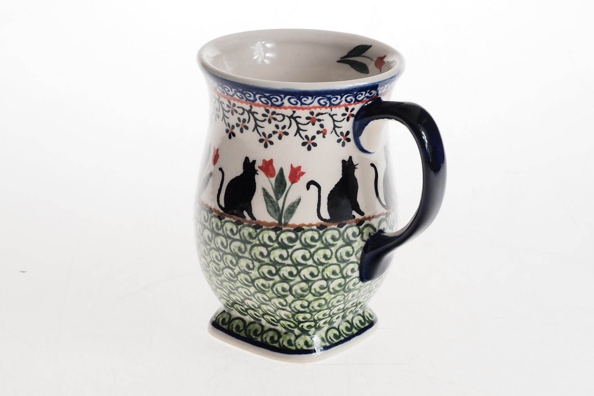 Kubek łączy funkcjonalność z tradycyjnym rzemiosłem i będzie praktycznym elementem codziennej zastawy oraz efektownym uzupełnieniem ceramicznej kolekcji.