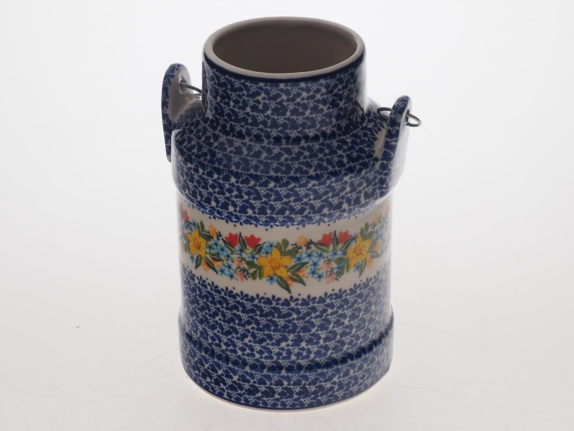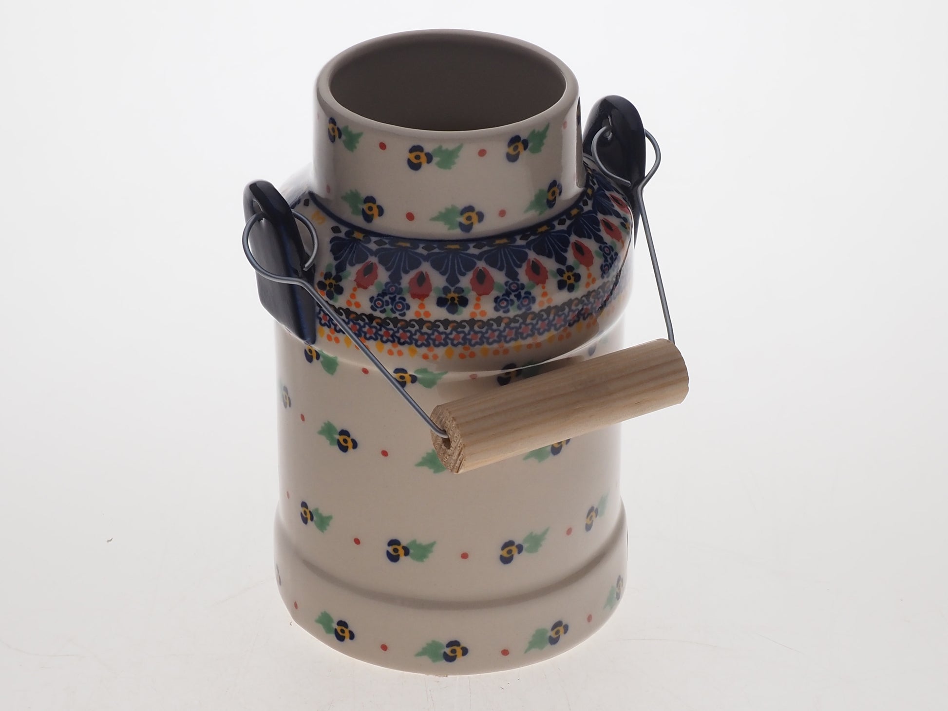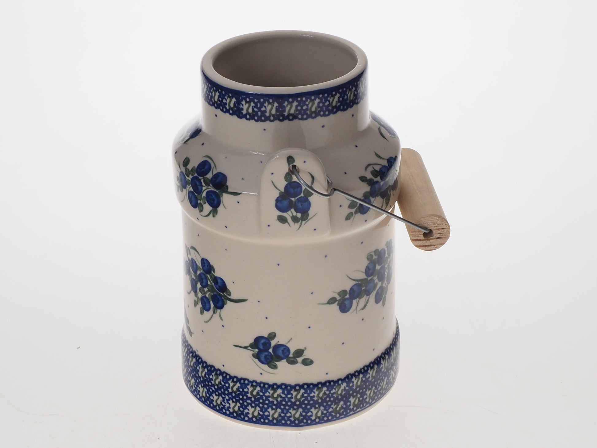 Ceramiczna kanka o dużej pojemności i tradycyjnym kształcie, przeznaczona do przechowywania i serwowania mleka, kompotów, soków lub wody. Dzięki swojej solidnej konstrukcji i klasycznej formie, może również służyć jako stylowy pojemnik kuchenny do przechowywania produktów sypkich lub jako dekoracyjny wazon na świeże kwiaty, wprowadzając sielski klimat do wnętrza.