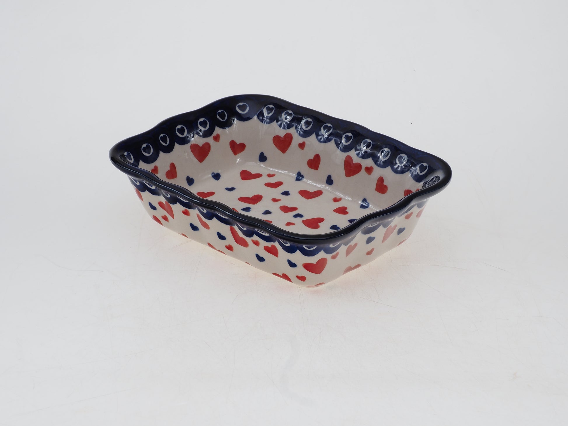 Ceramiczne naczynie do zapiekania o prostokątnym kształcie i ozdobnym, falowanym rancie. Idealnie nadaje się do przygotowywania oraz serwowania mniejszych porcji zapiekanek, lasagne czy deserów na ciepło bezpośrednio na stół.