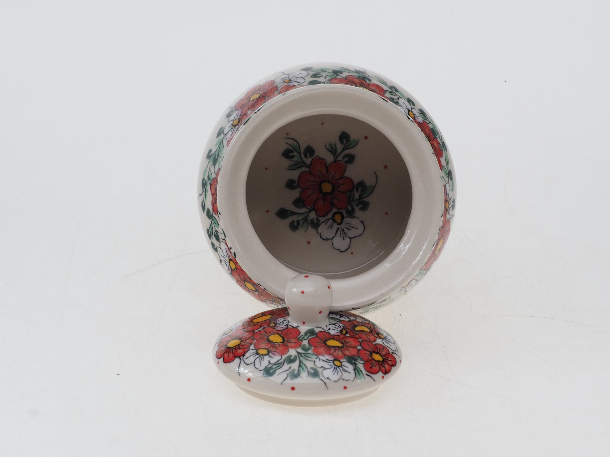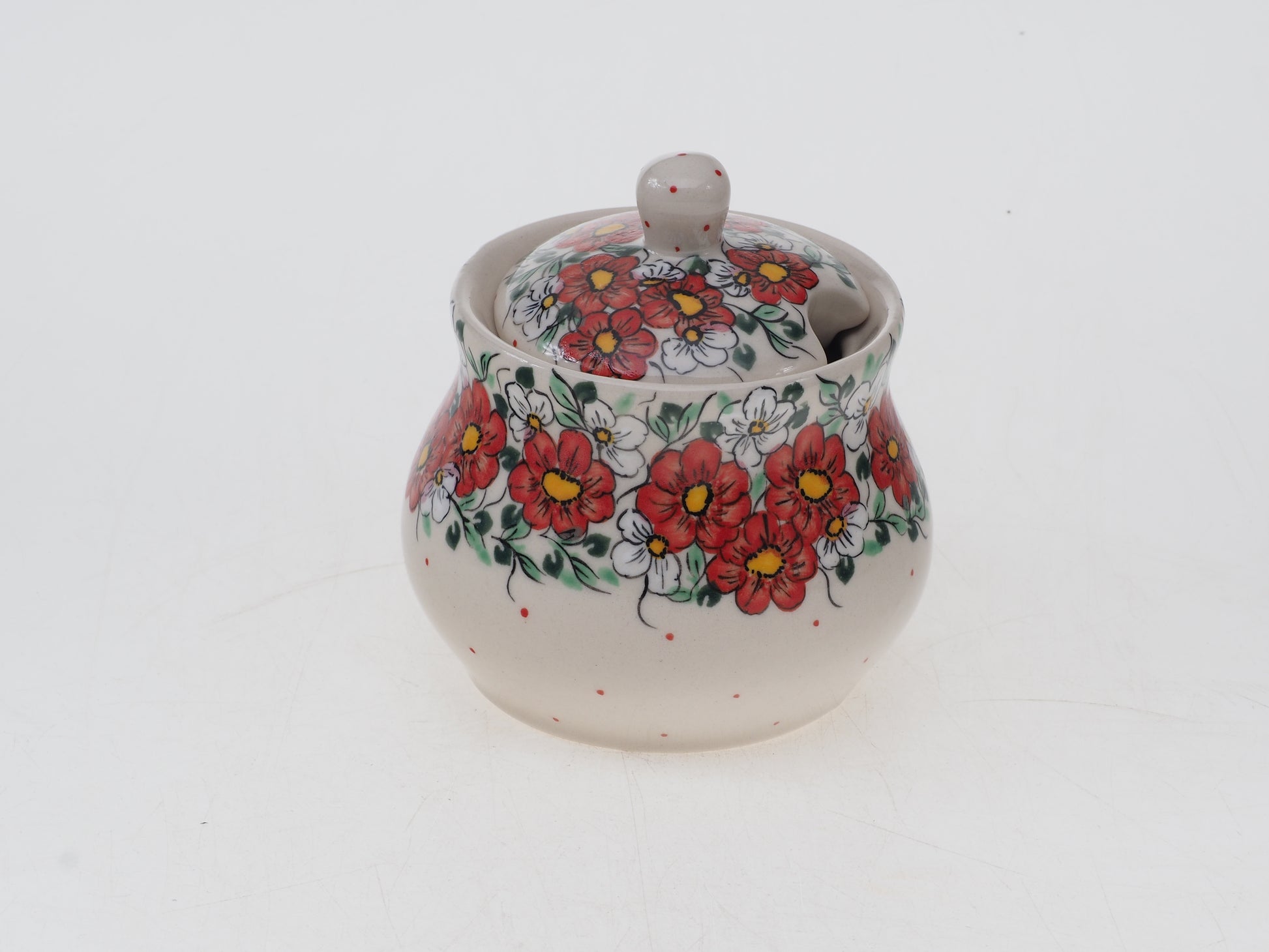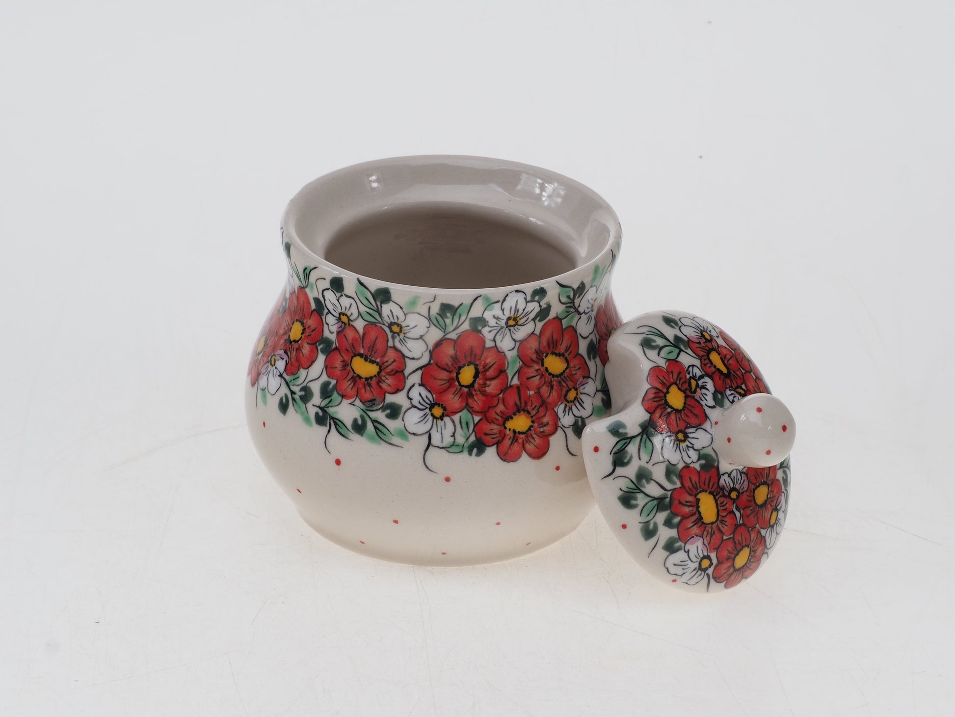Ceramiczna cukiernica o klasycznej, zaokrąglonej formie, przeznaczona do przechowywania cukru oraz innych drobnych dodatków stołowych. Dzięki kompaktowej pojemności sprawdzi się zarówno w codziennym użytkowaniu, jak i podczas serwowania kawy czy herbaty.