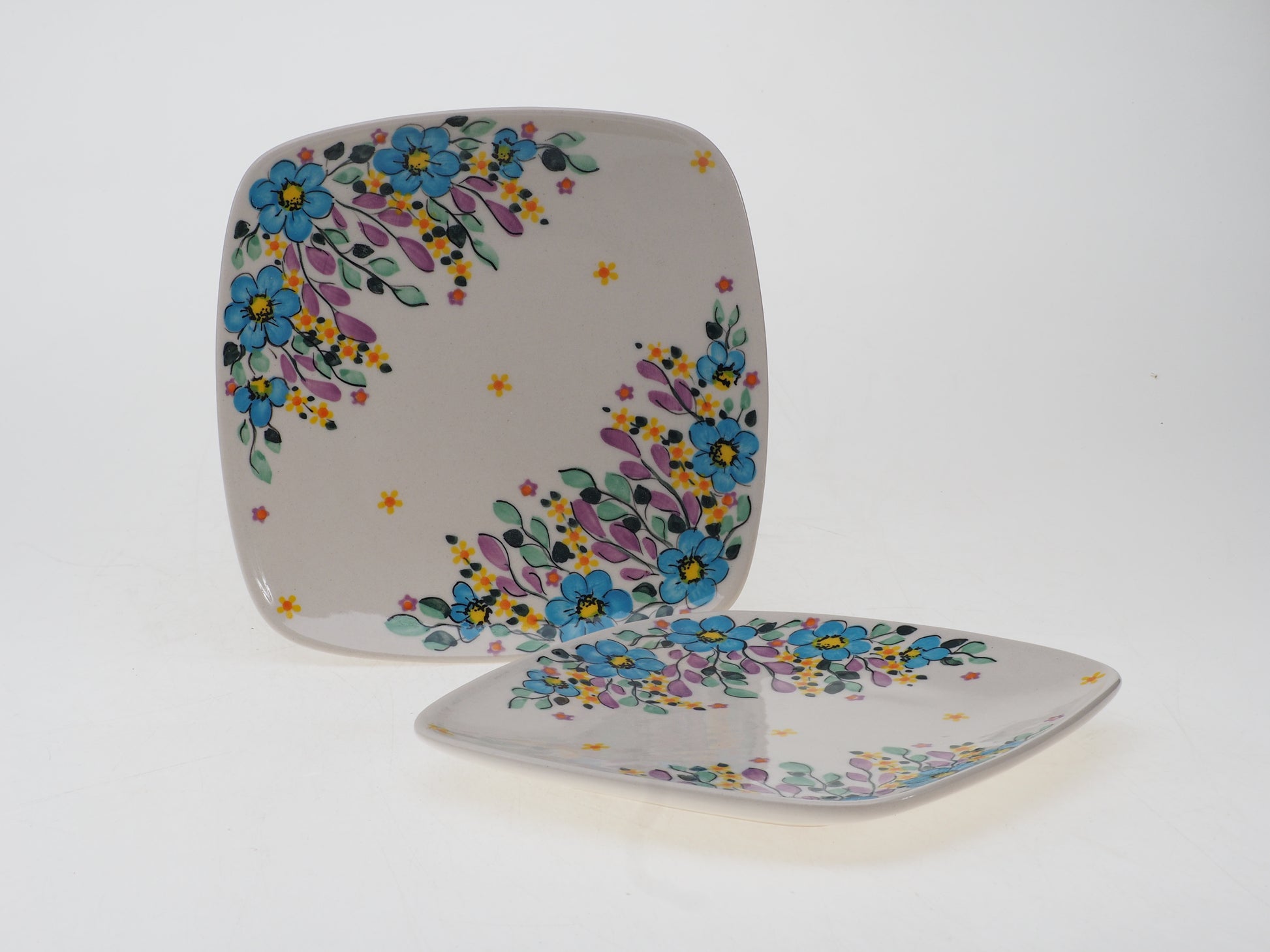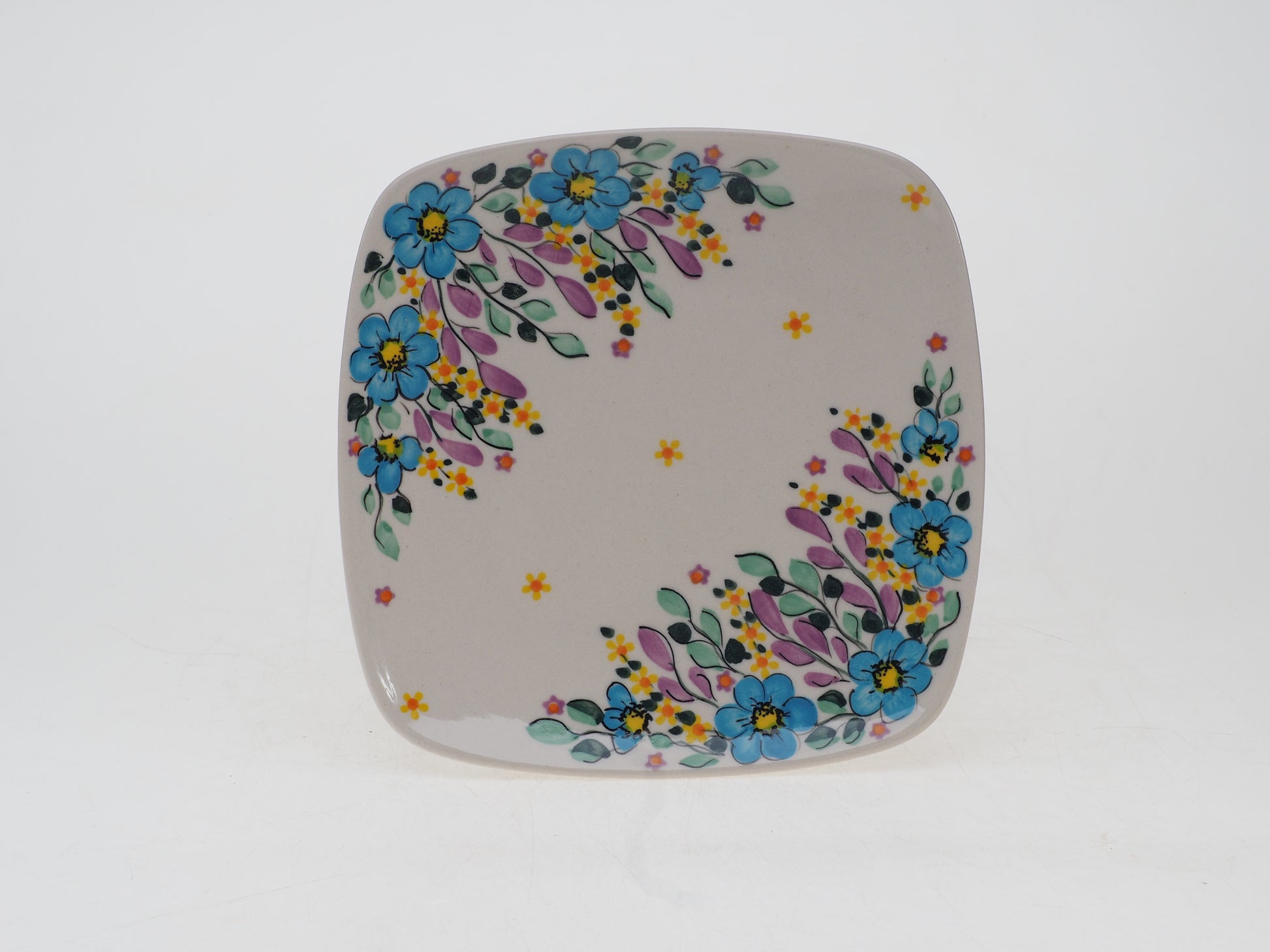 Ceramiczny talerz deserowy o nowoczesnym, kwadratowym kształcie, przeznaczony do serwowania ciast, owoców oraz drobnych przekąsek. Dzięki swojej formie doskonale prezentuje się na stole, nadając każdemu spotkaniu wyjątkowej oprawy.